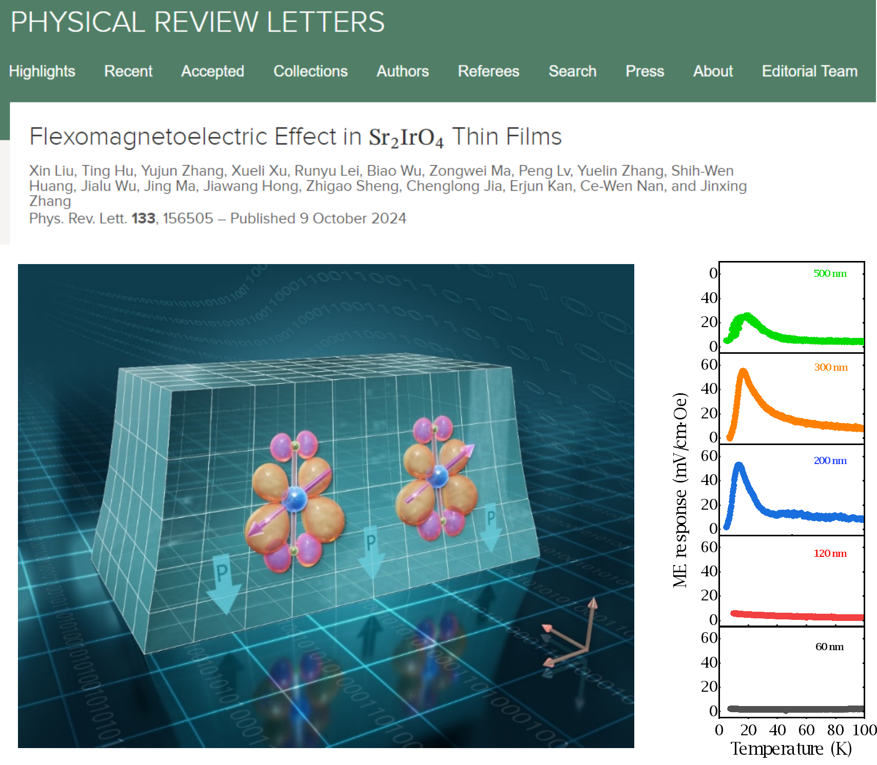 黑料吃瓜 张金星课题组与合作者以“Flexomagnetoelectric Effect in Sr2IrO4 Thin Films”为题在《物理评论快报》上发表学术成果,该研究发现了通向磁电效应的新途径。
