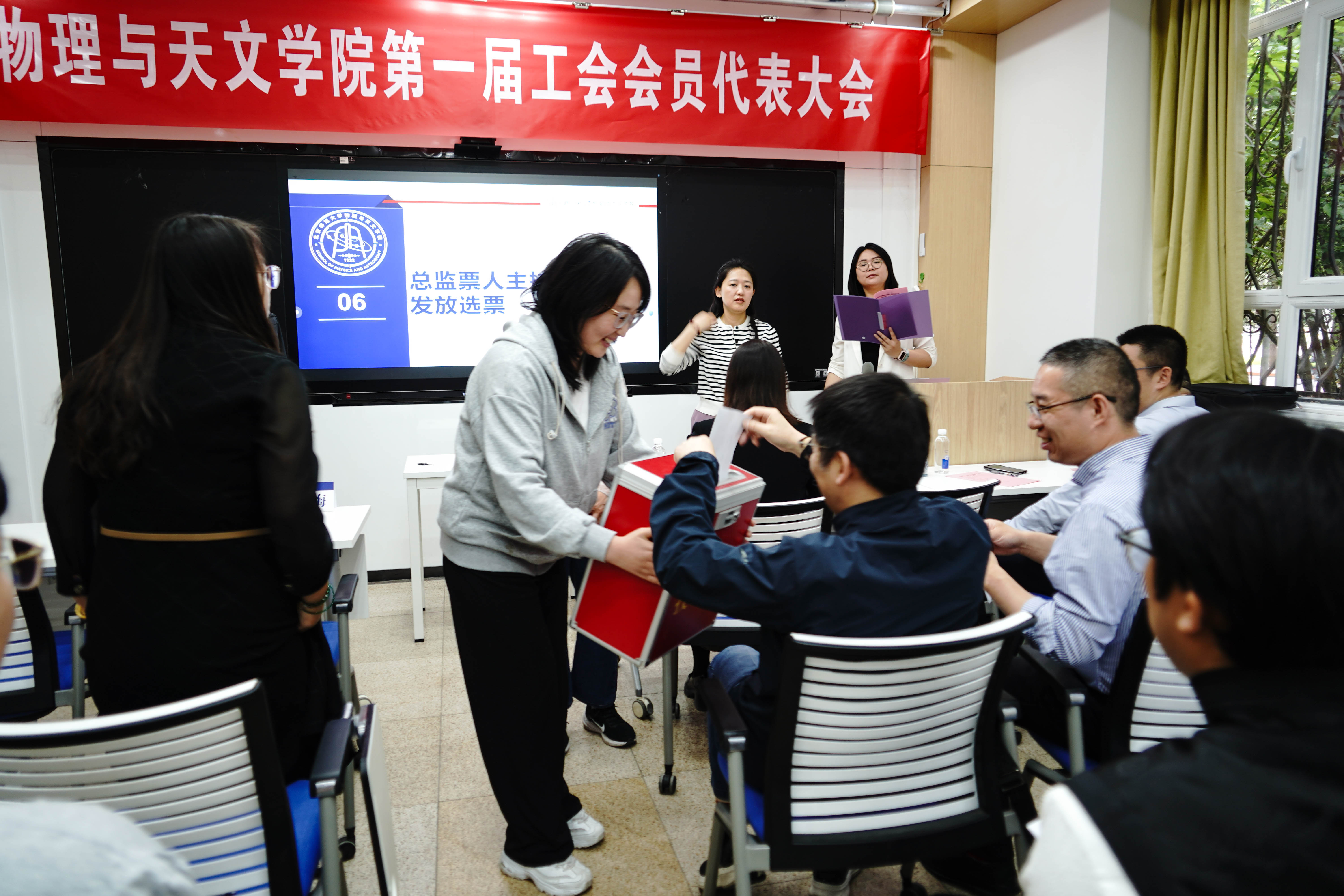 擎旗奋进正当时,殷殷嘱托催征程。学院党委书记梁颖在总结讲话中强调,工会是连接党委与教职工的桥梁,新一届工会要立足“双一流”建设大局,聚焦教职工急难愁盼问题,当好“贴心人”与“推动者”。她提出三点期望:一是架桥梁、聚合力,服务学院发展;二是办实事、暖人心,筑牢权益保障基石;三是勇创新、激活力,打造特色工会品牌。梁颖书记号召全体教职工以“勠力同心、接续奋斗”的精神,在暗物质探测、新材料科学等前沿领域勇攀高峰,立足讲台夯实基础教学根基,培养具有国际视野的创新人才。