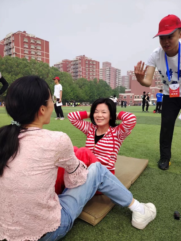 在体能测试环节,除了集体拉伸操,老师们可以根据自己的喜好进行参与。30米托球跑、仰卧起坐、坐位体前屈、象限跳和左右横跨等,每一项都吸引了老师们的积极参与。他们在赛场上挥洒汗水,尽情享受运动的快乐。