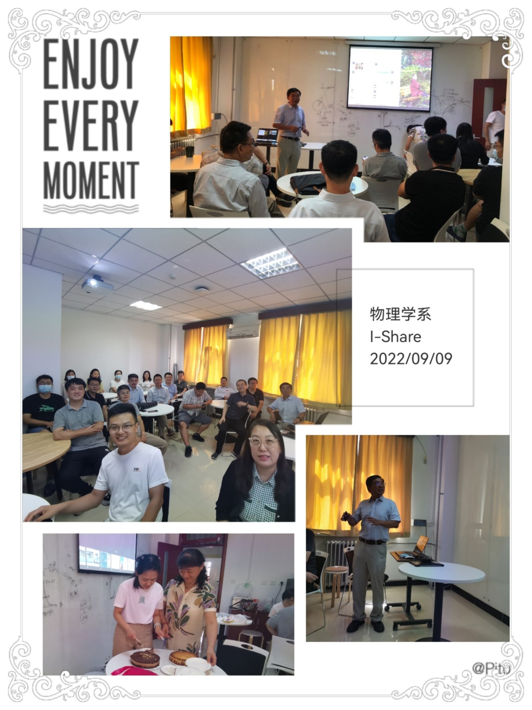 九月,带着秋的内敛,蕴着秋的端庄;九月,携着秋的成熟,含着秋的向往。在这收获的季节,物理学系工会精心组织策划了I-Share教师交流沙龙系列活动第一期暨第38个教师节庆祝活动。