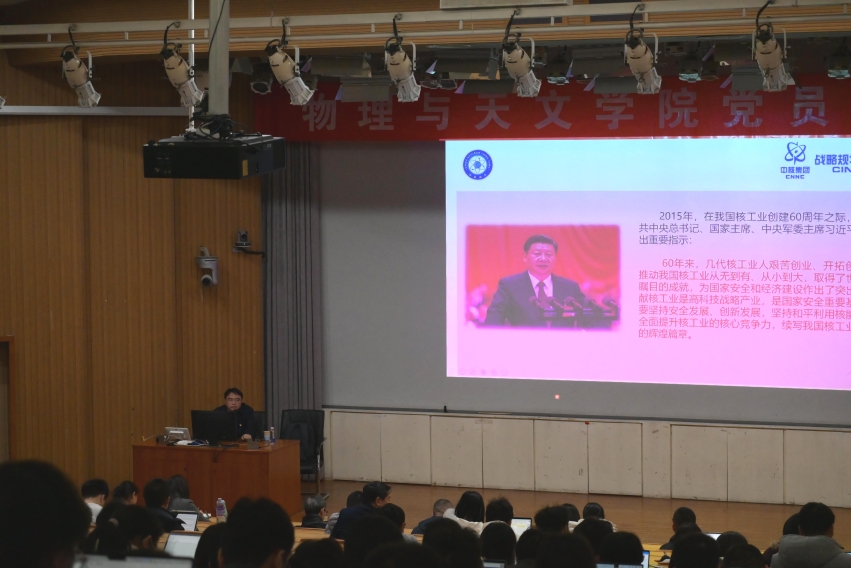 2024年11月21日上午,学院党委联合工会组织开展党员大讲堂第二期专题讲座,本次讲座邀请到了中国原子能出版社总编辑谭俊作“勤思觅天火 深情寄杏坛”黄祖洽先生精神专题报告。活动由学院党委书记梁颖主持,学院党委副书记谢天、副书记刘珊珊、学院副院长桑海波、副院长高鹤出席,全院师生党员和入党积极分子参加。