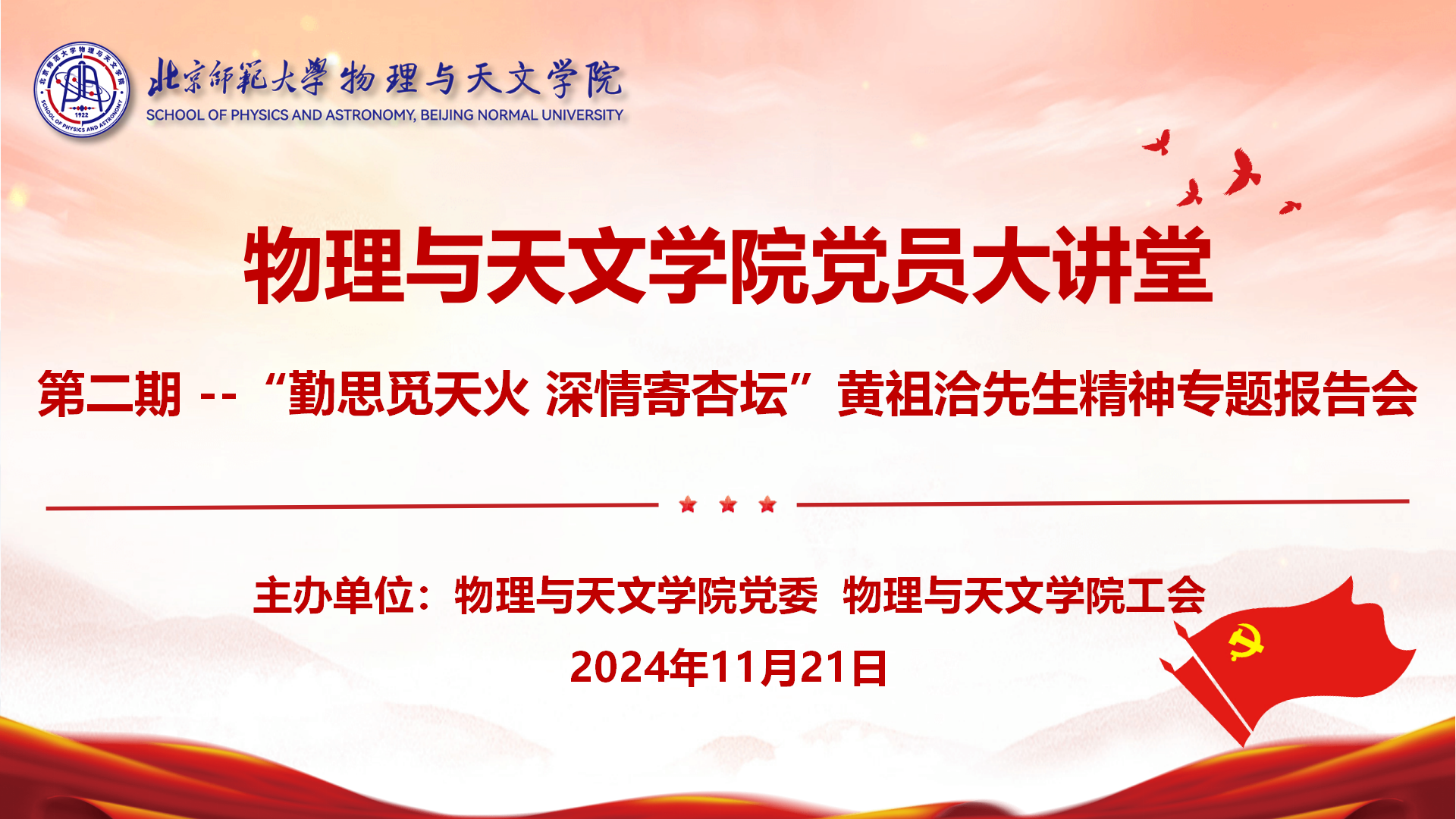 2024年11月21日上午,学院党委联合工会组织开展党员大讲堂第二期专题讲座,本次讲座邀请到了中国原子能出版社总编辑谭俊作“勤思觅天火 深情寄杏坛”黄祖洽先生精神专题报告。活动由学院党委书记梁颖主持,学院党委副书记谢天、副书记刘珊珊、学院副院长桑海波、副院长高鹤出席,全院师生党员和入党积极分子参加。