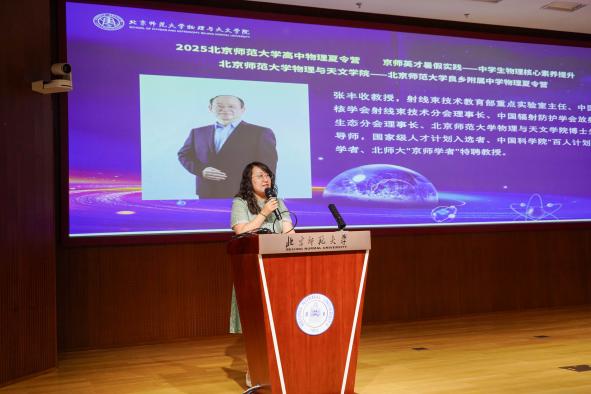 盛夏追光,星海启航。7月27日上午,开营仪式在京师学堂京师厅激情点燃。身着营服的学子们目光灼灼,神采洋溢。黑料吃瓜 党委书记梁颖教授发表启航致辞。梁颖书记热烈欢迎胸怀科学梦想、志在探索未知的全国优秀物理少年。她指出,物理学是人类认知世界最锋利的智慧之剑,是好奇心驱动的伟大冒险,更是理解人类宇宙位置的根本途径。本次夏令营,依托北师大物理百年传承的深厚底蕴与“学为人师,行为世范”的校训精神,是大学-附校“学科一体化拔尖创新人才培养”的关键实践。她殷切期望同学们,用心探寻物理之美,让理性之光照亮思维;深刻领悟物理作为“改变世界支点”的力量,将科学梦想融入服务国家、贡献人类的时代使命。