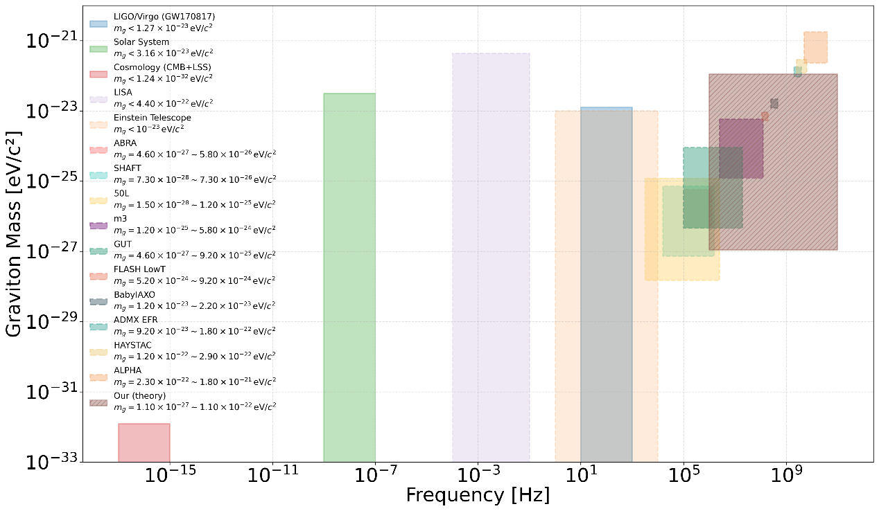 图1. 当前及未来实验对引力子质量的限制