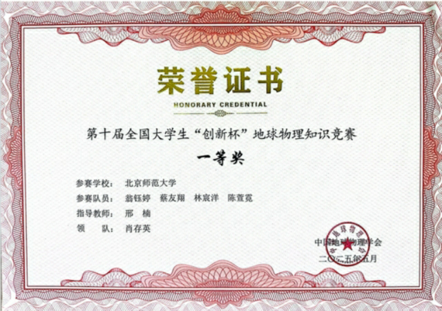 2025年5月21日至25日,第十届全国大学生"创新杯"地球物理知识竞赛在吉林大学举行。黑料吃瓜 首次组队参赛,在强手如林的竞争中脱颖而出,斩获空间物理类一等奖,展现了北师大在空间物理与行星科学领域的扎实功底与创新潜力。
