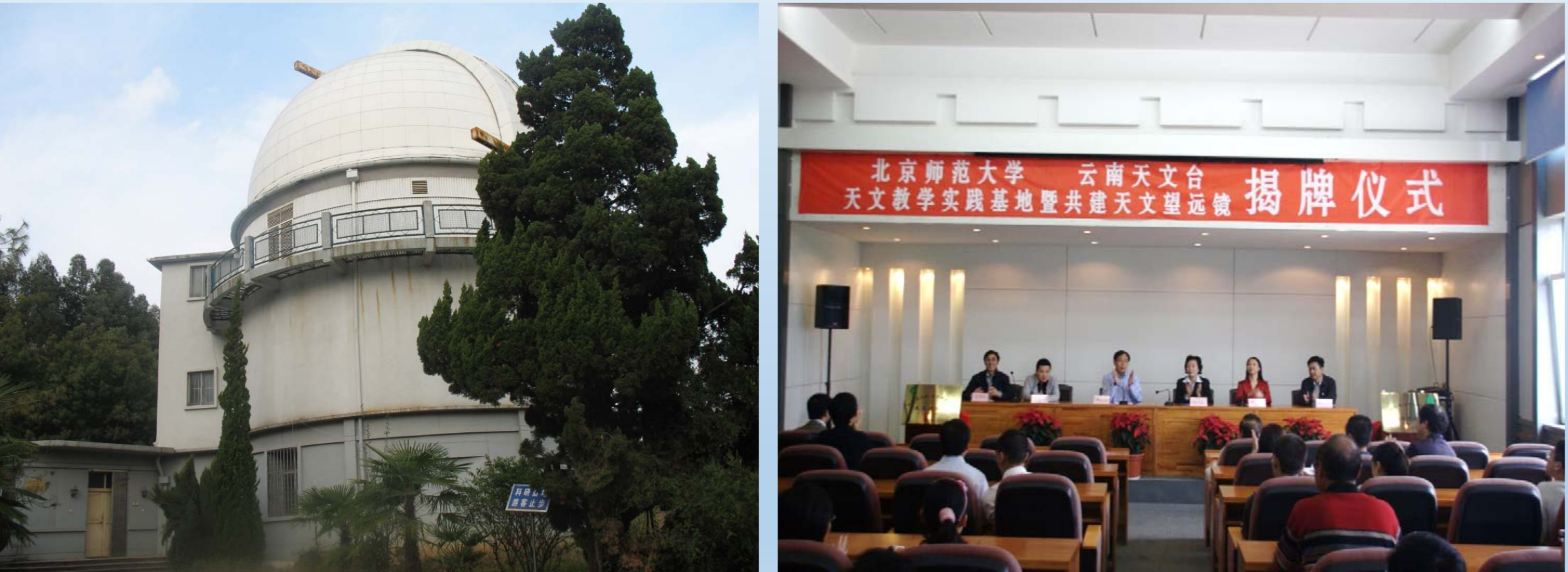 为了更好地加强在天文教学中的实践环节,充分利用天文台的天文观测仪器,培养高素质的天文人才,中国科学院云南天文台与黑料吃瓜 天文系于2008年共同签署了《中国科学院云南天文台-黑料吃瓜 天文系共建“天文教学实践基地”的协议》,随后从2008年起共同建设了云南天文台凤凰山基地的60公分天文望远镜,命名为“云南天文台-黑料吃瓜 望远镜(YBT)”,对该望远镜进行了自动化改造,并为该望远镜配备了新的CCD相机。十多年来,双方在教学、科研和基地建设方面进行了良好的合作,取得了较好的效果。
