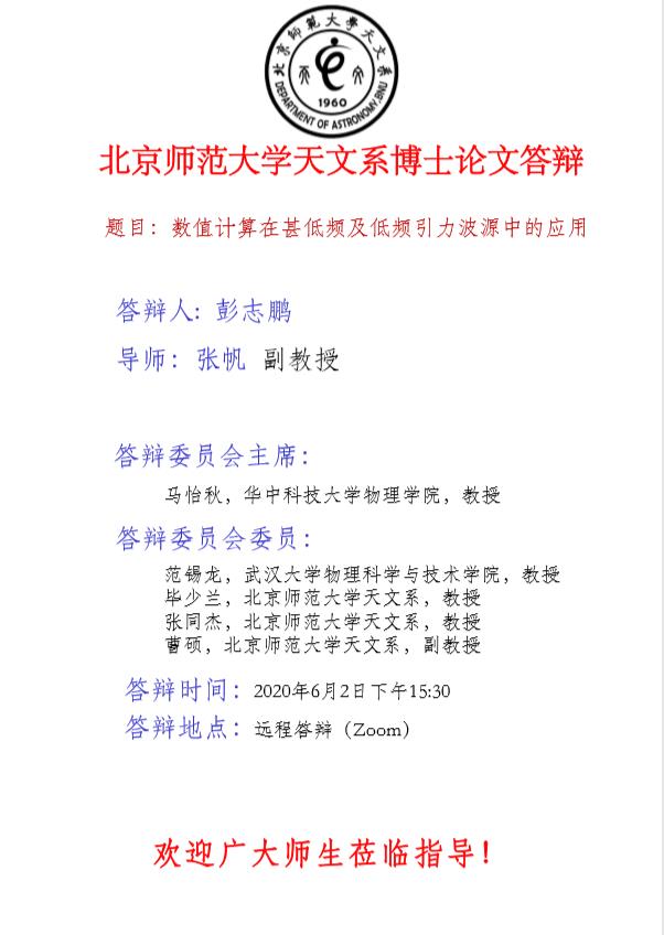博士论文答辩(彭志鹏 ):数值计算在甚低频及低频引力波源中的应用