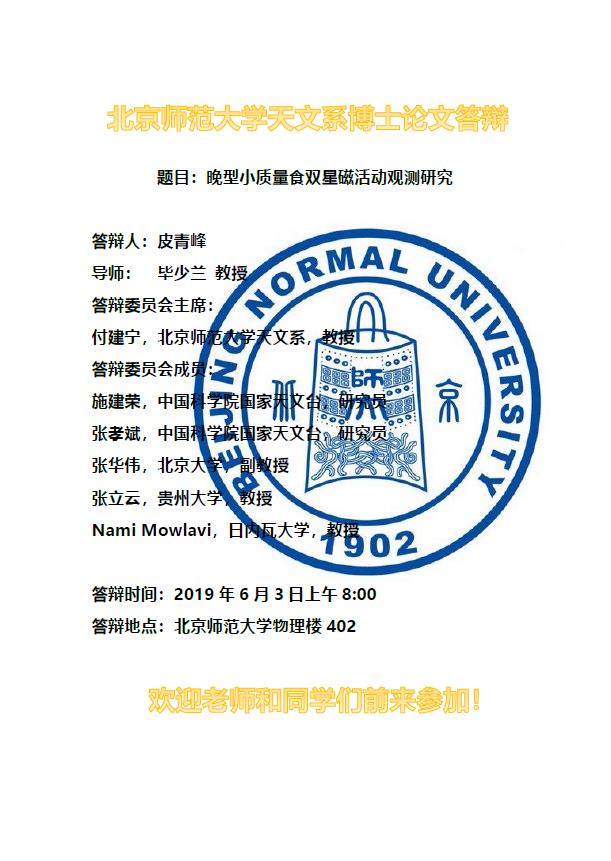 博士答辩(皮青峰):晚型小质量食双星磁活动观测研究