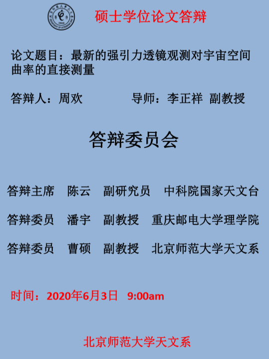 硕士答辩(周欢):最新的强引力透镜观测对宇宙空间曲率的直接测量