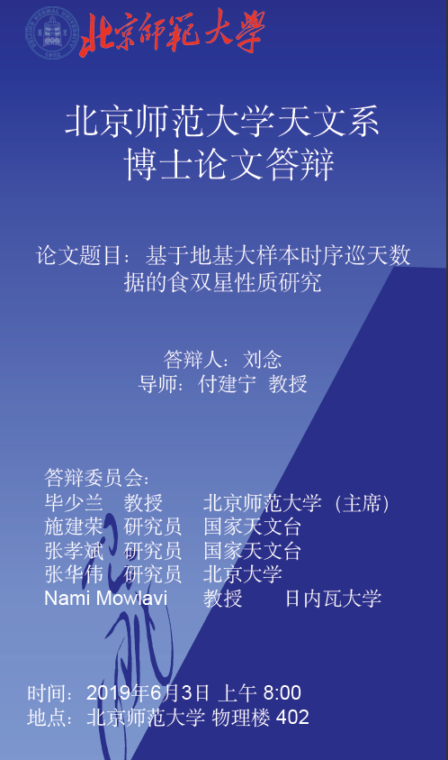 博士答辩(刘念):基于地基大样本时序巡天数据的食双星性质研究
