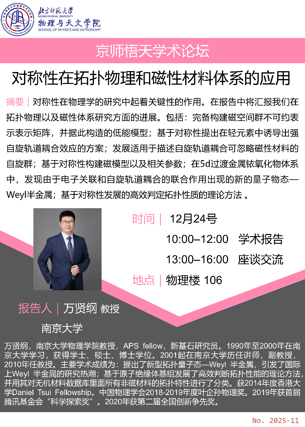 本次活动为“京师悟天学术论坛”第十一期,面向全院师生开放,欢迎感兴趣的老师和同学踊跃参加。请注意,这是本学期的最后一场论坛,精彩收官,期待下学期再会。