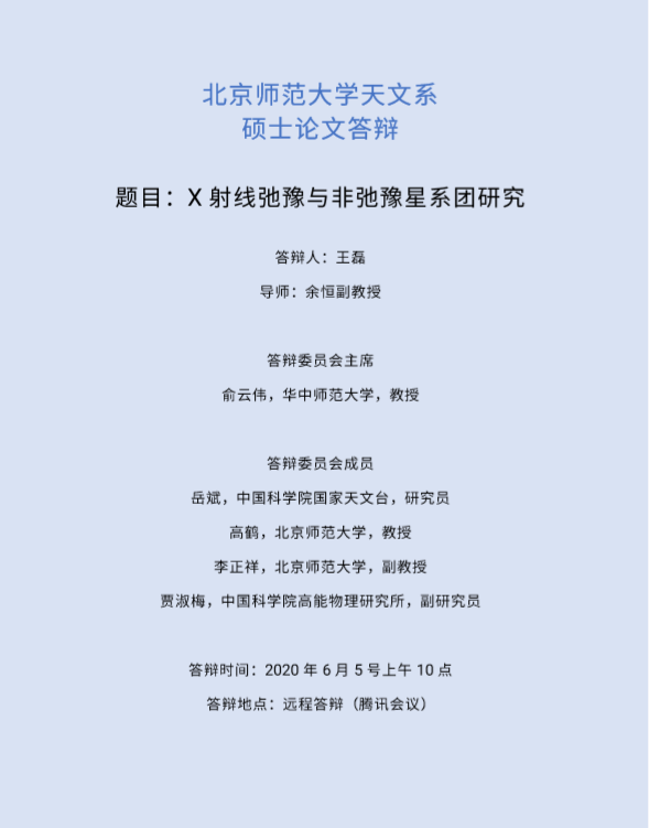 硕士答辩(王磊):X射线弛豫与非弛豫星系团研究