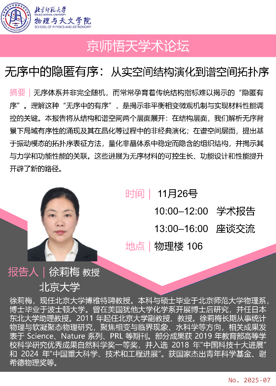 本次活动为“京师悟天学术论坛”第七期,面向全院师生开放,欢迎感兴趣的老师和同学踊跃参加。