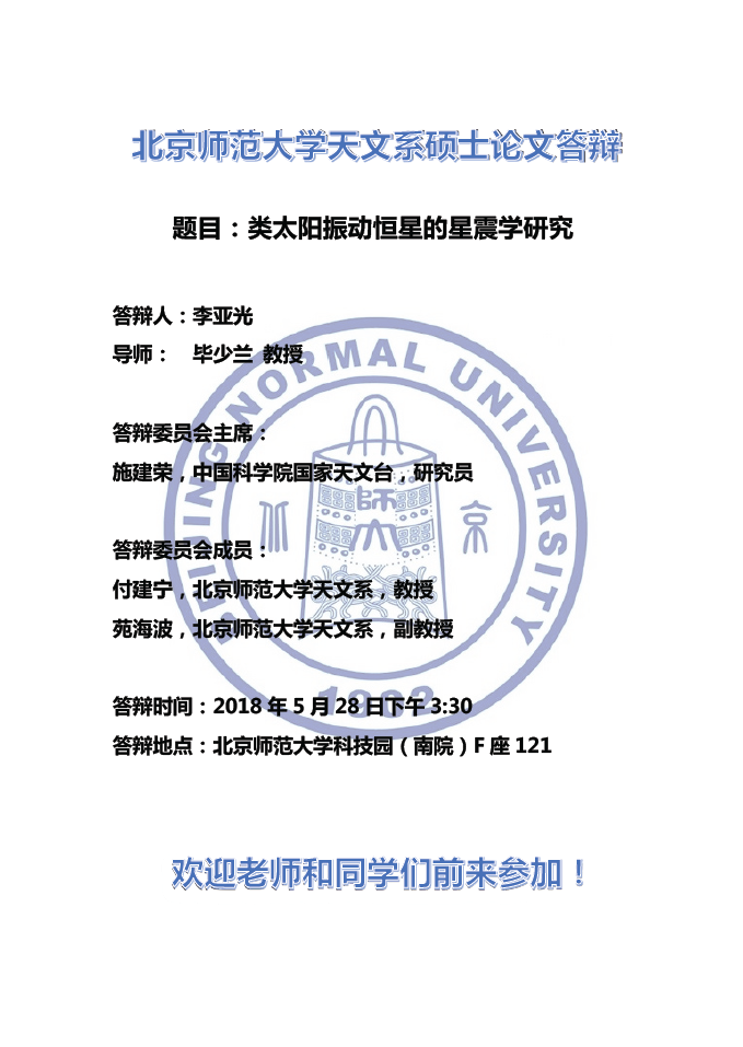 硕士答辩(李亚光):类太阳振动恒星的星震学研究
