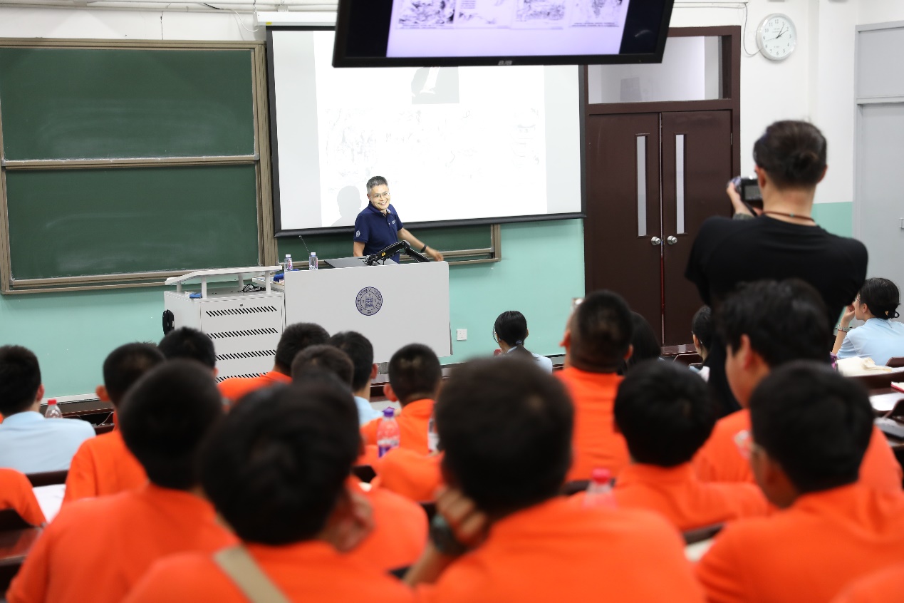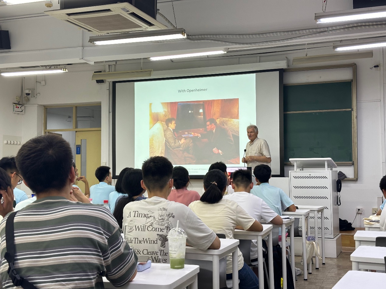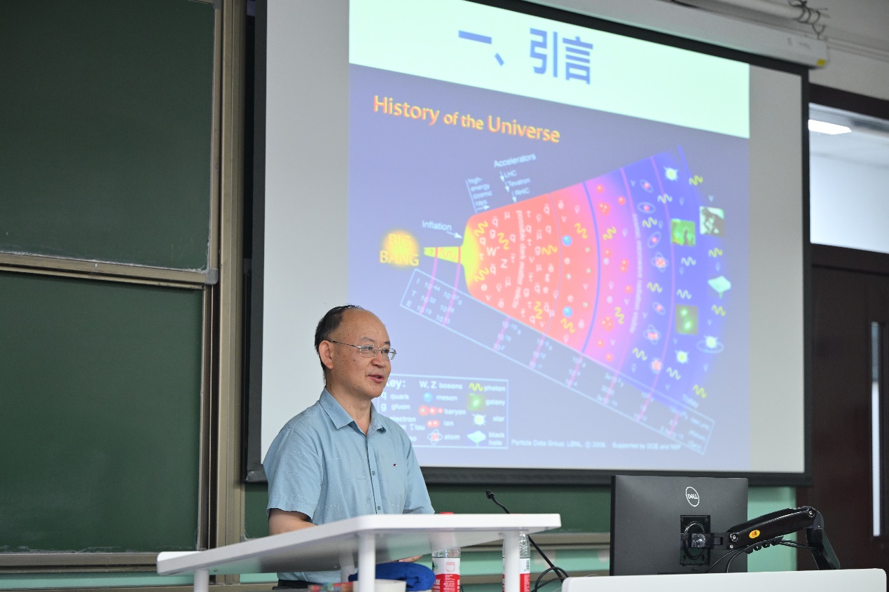 来自法国的Laurent Barulieu教授全英文讲授《CERN as a master piece about matter, space and time》,介绍欧洲核子研究中心和大型强子对撞机如何推动粒子物理学、宇宙学等领域发展。