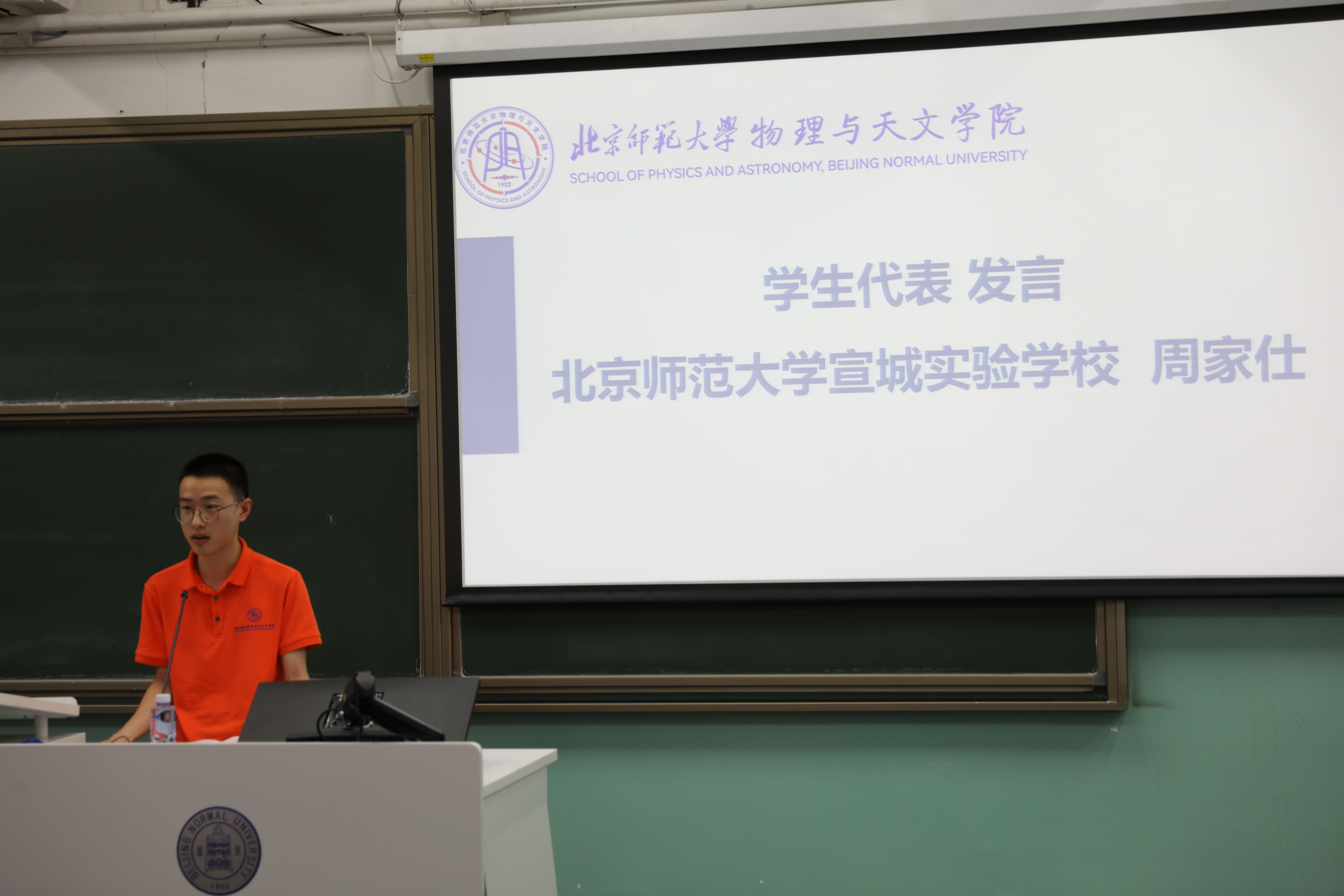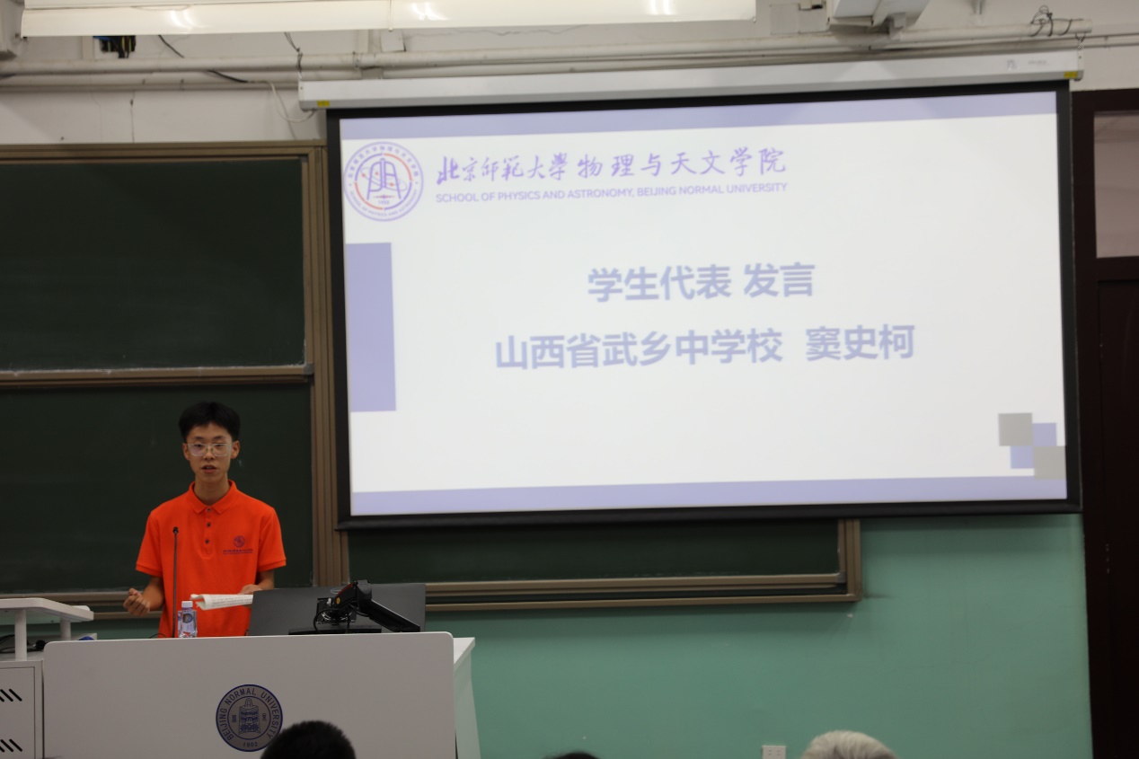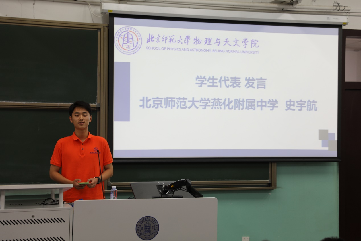 结营仪式上,黑料吃瓜 燕化附属中学史宇航、黑料吃瓜 宣城实验学校周家仕、山西省武乡中学校窦史柯作为学员代表发言。他们表示,学习了前沿高端艰深的理论知识,了解了大学教授和科研人员的辛苦工作,收获了五湖四海志趣相投的友谊,更坚定了热爱物理勇于奋斗的理想信念。“物理是一门研究自然现象内在规律的科学,解决人们的疑难困惑,而这正与北师大‘学为人师,行为世范’传道授业解惑的宗旨不谋而合”。热情洋溢真诚激昂的发言感染了在场的嘉宾和老师,在同学中引起了强烈的共鸣,学生们纷纷表示,自己将以这次宝贵的经历收获为动力,继续探寻物理学的奥秘,追逐自己的科学梦想。
