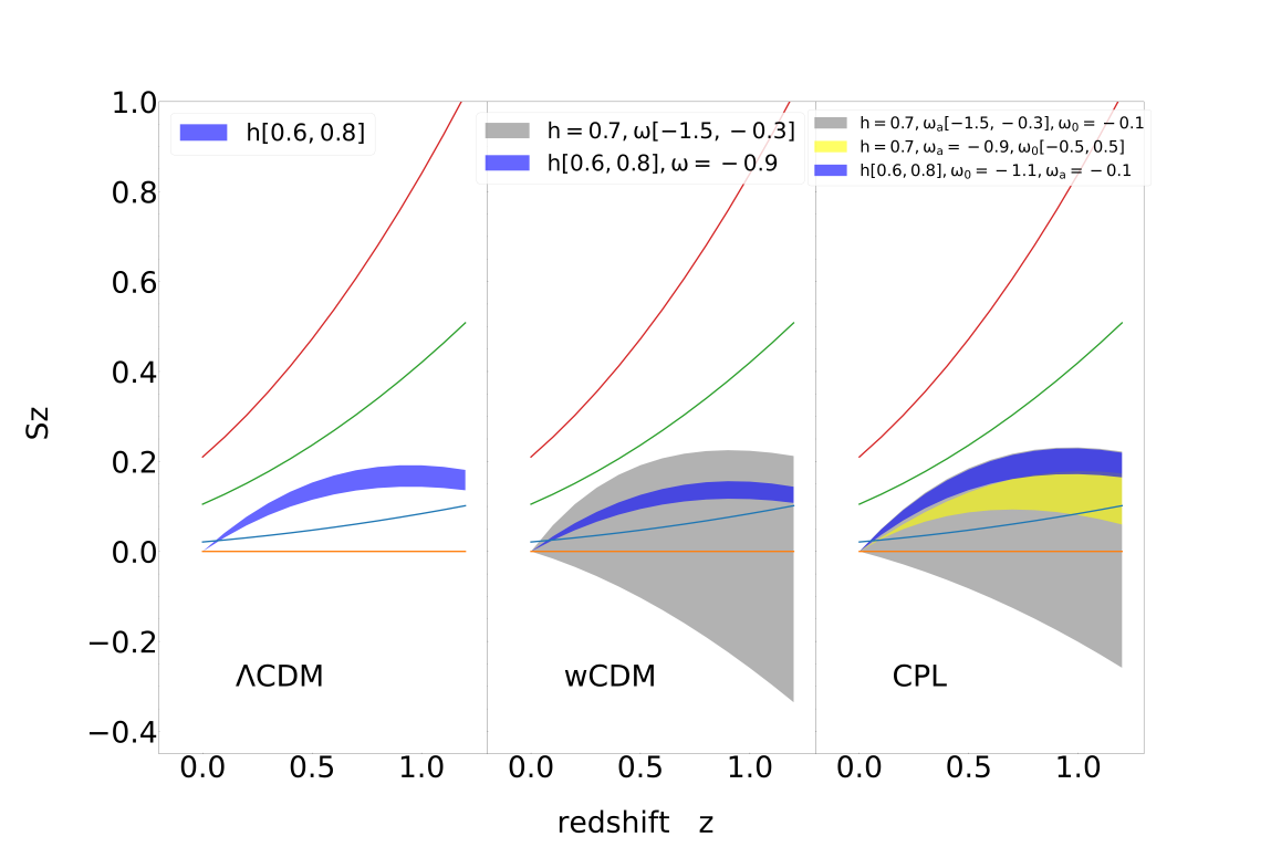 图3. 红移漂移测量对不同宇宙模型下宇宙学参数限制。
