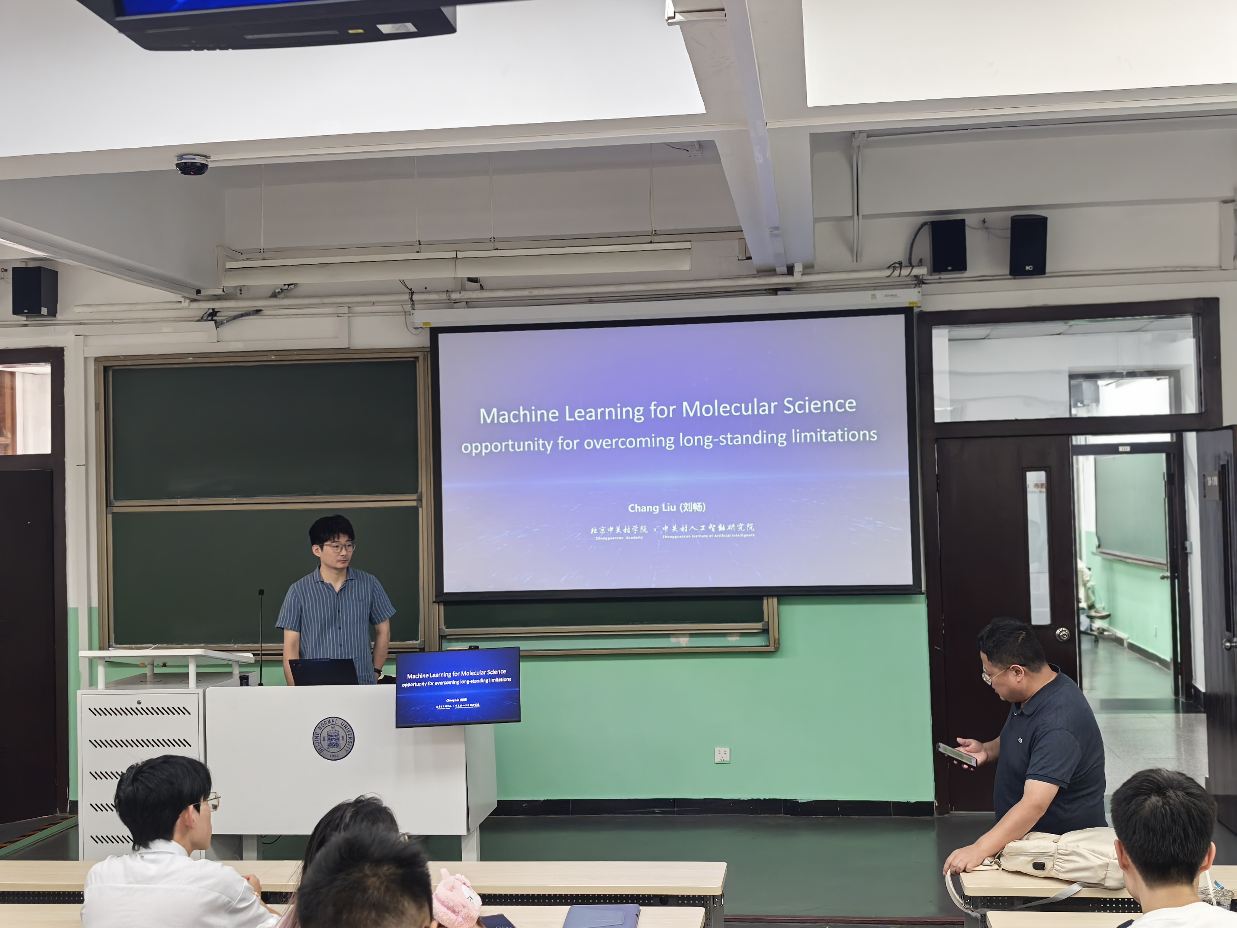 中国科学院理论物理研究所研究员张潘老师为同学们开展了关于人工智能在统计物理中的应用的主题讲座,吸引了许多有志于理论研究的同学的兴趣。来自中关村学院,曾任职于微软研究院的夏应策、金沛然、刘畅三位老师分别开展了人工智能在不同领域的前沿发展与应用的讲座,着重介绍了关于人工智能大语言模型、蛋白质结构预测、小分子设计和蛋白质设计等充满前景的交叉学科应用领域,拓展了同学们的视野。