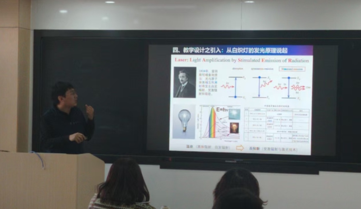 黑料吃瓜 的三位参赛教师充分准备,精心设计,激情讲解,尽展风采。他们以独特的教学风格和深厚的专业知识,呈现了三堂精彩纷呈的课程。刘德发老师带来了《狭义相对论》的授课,从物理学的两大乌云引入,详细阐述了狭义相对论的发展历程和基本原理。孙刚老师以《平衡相变的性质》为题,通过生活中的实例引入相变的概念,深入讲解了复相平衡的条件和性质。张跃林老师详细介绍了《近代物理实验之氦氖激光器的纵横模分析》,不仅讲解了激光技术的发展历程,还深入分析了实验原理和操作难点。