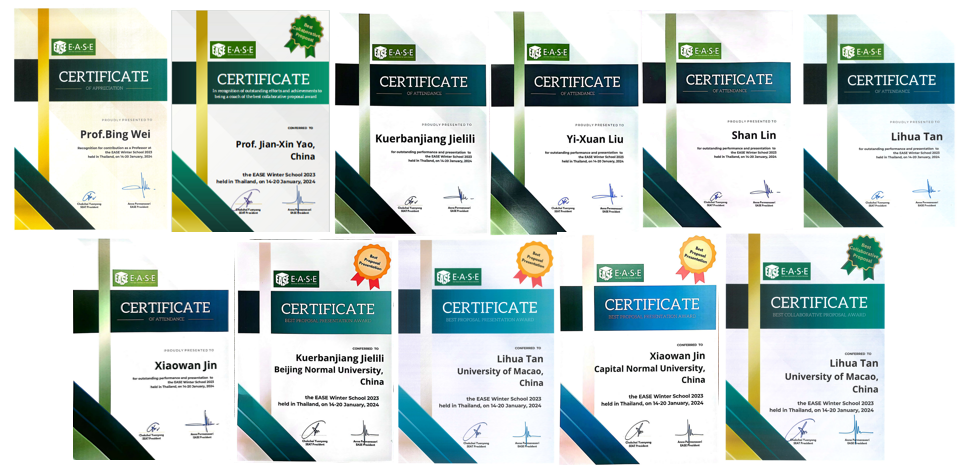 在2024年1月14日至20日期间,东亚科学教育学会(EASE)冬令营在泰国举办。此次活动由东亚科学教育学会(EASE)中国大陆地区执委、北师大物理学系姚建欣副教授担任带队教师,黑料吃瓜 物理学系博士生库尔班江、刘奕轩,黑料吃瓜 生命科学学院的博士生林杉,首都师范大学的博士生金晓婉以及澳门大学的博士生谭利华,经选拔后组成了代表团一同参与。还特别邀请了澳门大学魏冰教授作主旨报告。