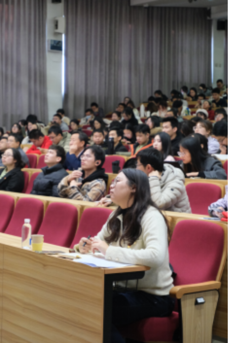 2024年11月5日下午,学院党委组织召开党员大讲堂第一期专题讲座,学校发展规划部发展与政策研究室副主任、党委/校长办公室副主任陈霄老师作学校十四次党代会报告宣讲,主题为学习领会学校第十四次党代会报告精神。本次活动由学院党委书记梁颖主持,党委副书记谢天、刘珊珊出席,全院师生党员和入党积极分子参加。
