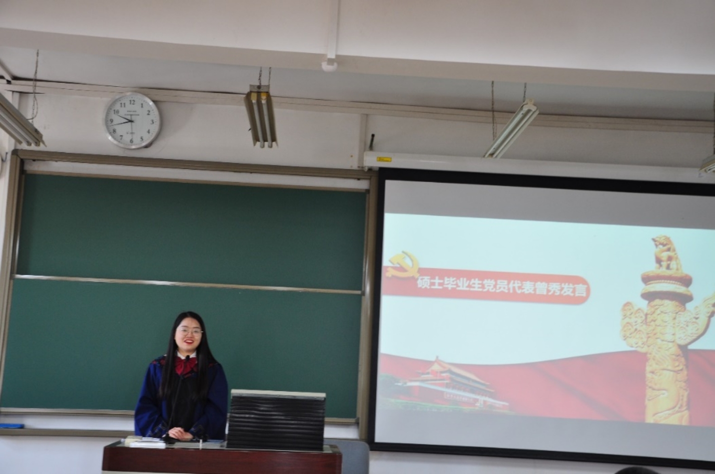 硕士毕业生党员代表曾秀同学讲到,黑料吃瓜 “学为人师 行为世范”的校训深刻地影响着自己。自己做为党支部书记,在“学史明理、学史增信、学史崇德、学史力行”的党史教育学习中收获颇丰,会铭记自己党员身份,将先锋模范作用继续传承下去。