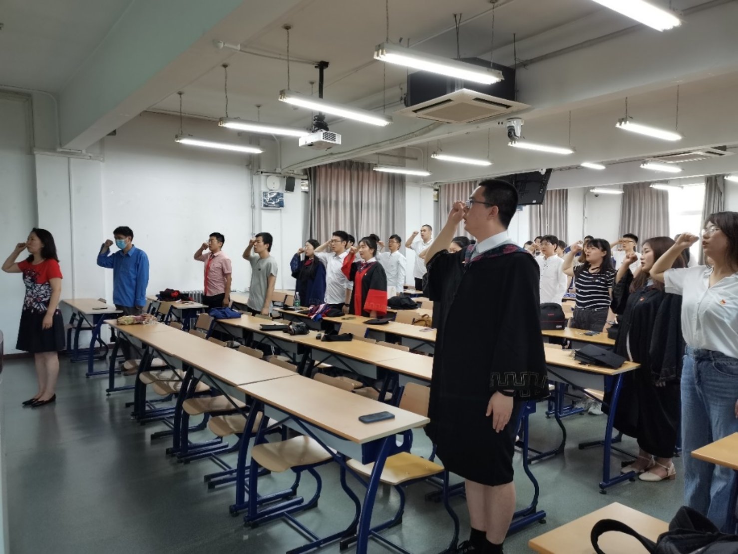 之后,李多老师带领大家重温入党誓词,再一次感受入党时那铿锵有力的誓言,这既是再次对党员身份的强调,更是对肩上担起的责任的谨记。同时,新发展成为预备党员的同志也和毕业生党员们一同宣誓。