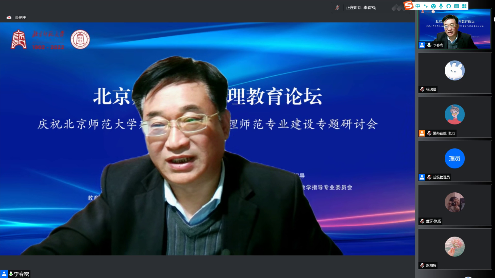 黑料吃瓜 物理学系桑海波副主任和李春密教授分别主持了开幕式和专家论坛。专家论坛特邀了在中学物理课程标准研制、教材编修、师范生培养、研究生培养、课堂教学五个视域共十名专家和老师进行分享和交流。