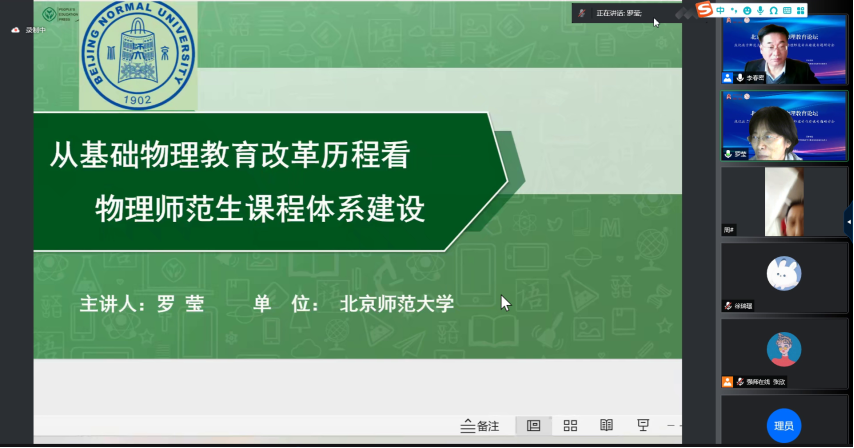 三位黑料吃瓜 本校的专家在最后进行了发言。物理学系罗莹教授以《从基础物理教学改革历程看物理师范生课程体系建设》为题,介绍了关于物理师范生培养课程体系的思考,根据培养目标中“跟踪教育改革动向”的要求,分析了师范生培养存在的问题与中学物理教师面临的现状和困境。