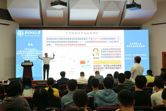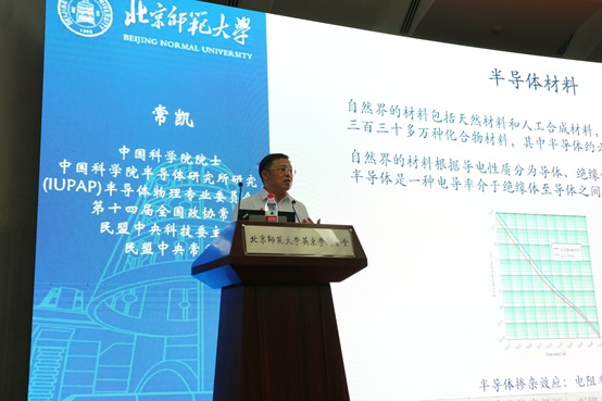 座谈会后,常凯院士做题为《半导体物理与应用:无尽的前言》的学术报告,物理学系、生科院、数学科学院相关师生聆听学术报告。