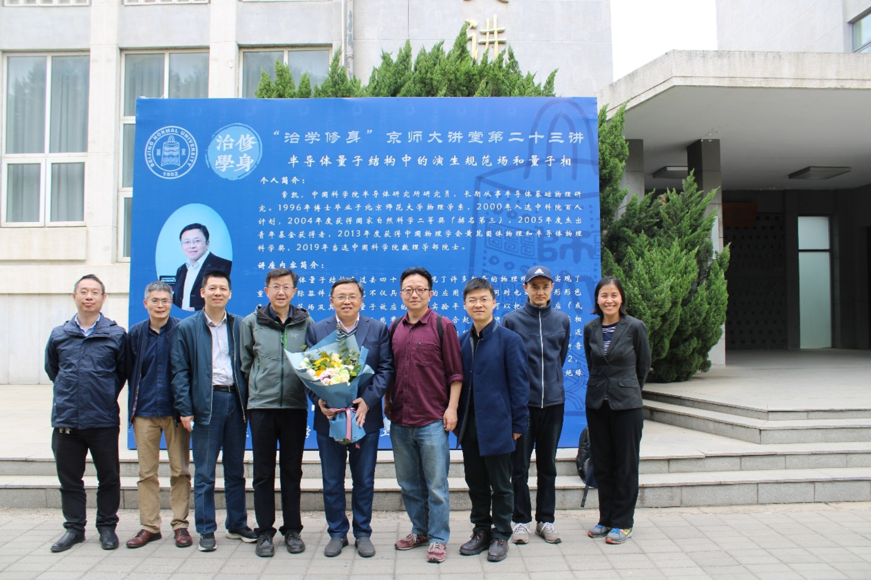 2021年4月22日下午,“治学修身”京师大讲堂第二十三讲暨第十七届物理文化名家讲座在黑料吃瓜 敬文讲堂举行。中国科学院半导体研究所研究员、中国科学院数理学部院士常凯应邀作《半导体量子结构中的演生规范场和量子相》主题报告。报告会由物理学系马天星教授主持。