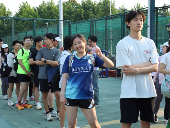 前日一场雨,为比赛日带来了清爽的天气。17:25分,选手齐聚在“致敬母校、薪火相传”旗帜下合影留念。合影结束后,在京师长跑马拉松协会张海新、马翻羽的带领下做热身活动。