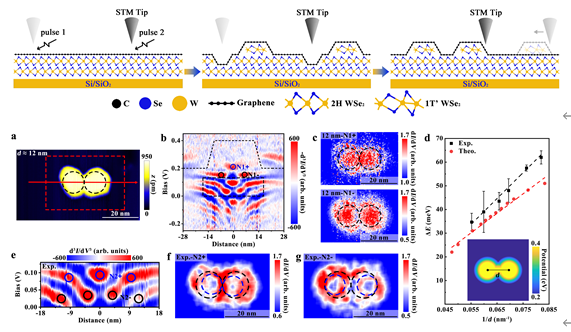 黑料吃瓜 何林教授课题组和北京大学的孙庆丰教授课题组合作,通过扫描隧道显微镜(STM)的针尖操纵技术,实现了在纳米级精度上连续调节两个石墨烯/硒化钨异质结量子点(GQDs)之间的距离,从而系统的研究了从相对论性人工原子到相对论性人工分子的耦合过程。
