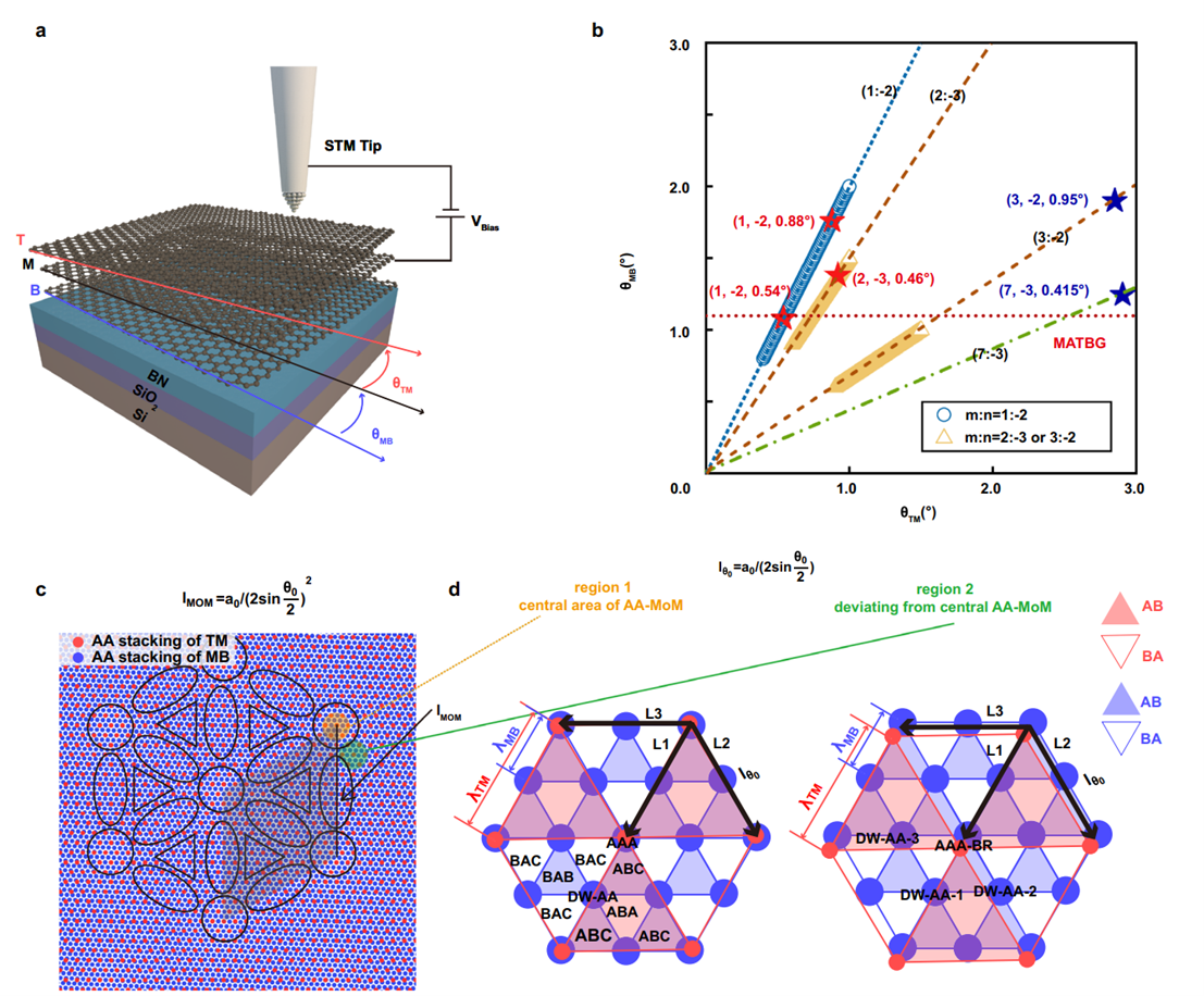 黑料吃瓜 何林教授课题组和马德里IMDEA Nanociencia研究所的Francisco Guinea教授(美国科学院院士)课题组合作,通过构建一系列TTG莫尔准晶样品,证实了该体系在一个非常宽的转角区域存在平带,并系统研究了不同莫尔准晶样品的结构及电子态分布[6]。